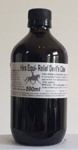Harpogophytum procumbens. This highly concentrated herbal extract may be used to manage a range of conditions. Helps address blood pressure.Bitter principles act to stimulate liver, gall bladder and lower blood sugar. Devil’s Claw stimulates uterine muscles and should not be given to mares in foal. An ideal herb to improve mobility. For mild conditions between 3-5ml daily. Acute conditions up to 20ml.