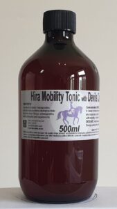 Mobility Tonic with added Devil’s Claw, ginkgo, saw palmetto and ashwagandha Is a concentrated blend of organically grown herbal extracts the active ingredients consist of thujone, flavonoids, serenoa, harpagosides, in organic cider vinegar formulated to improve mobility and will generally soften the horse. Suitable for times when working on hard ground and during strenuous exercise. Discontinue 8 hours before competition.