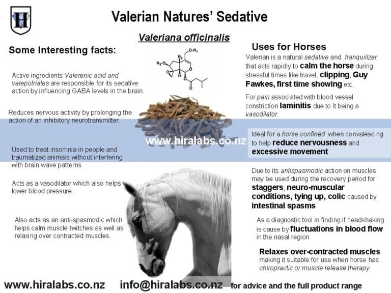 Low grade laminitis causes constricted vessels and pain. Valerian acts as a vasodilator which may relieve some of the pain.